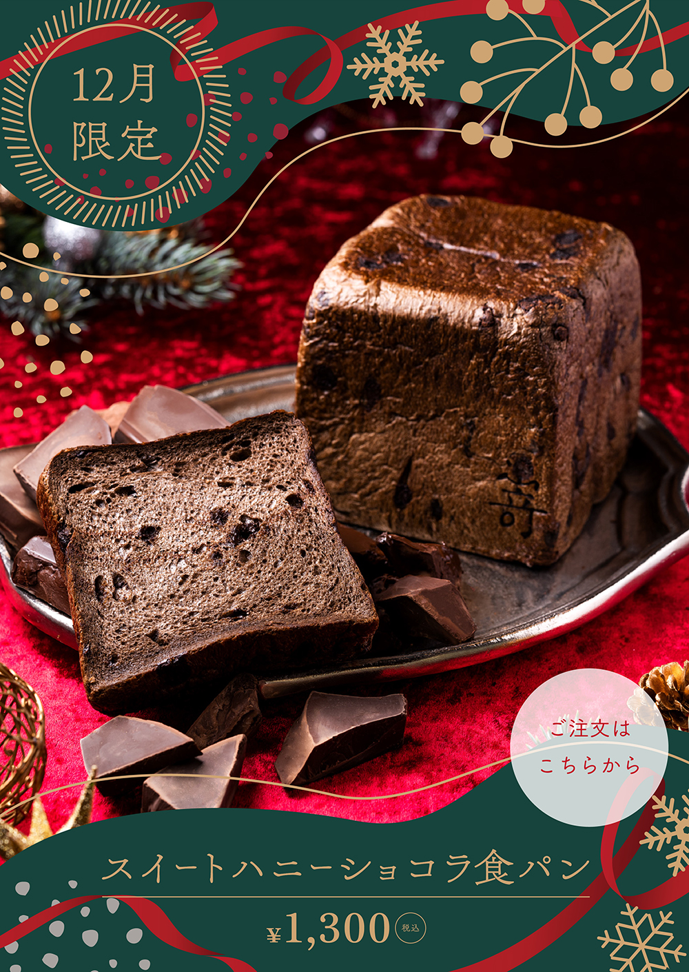 12月1日(月)より、12月限定『スイートハニーショコラ食パン』が登場いたします。