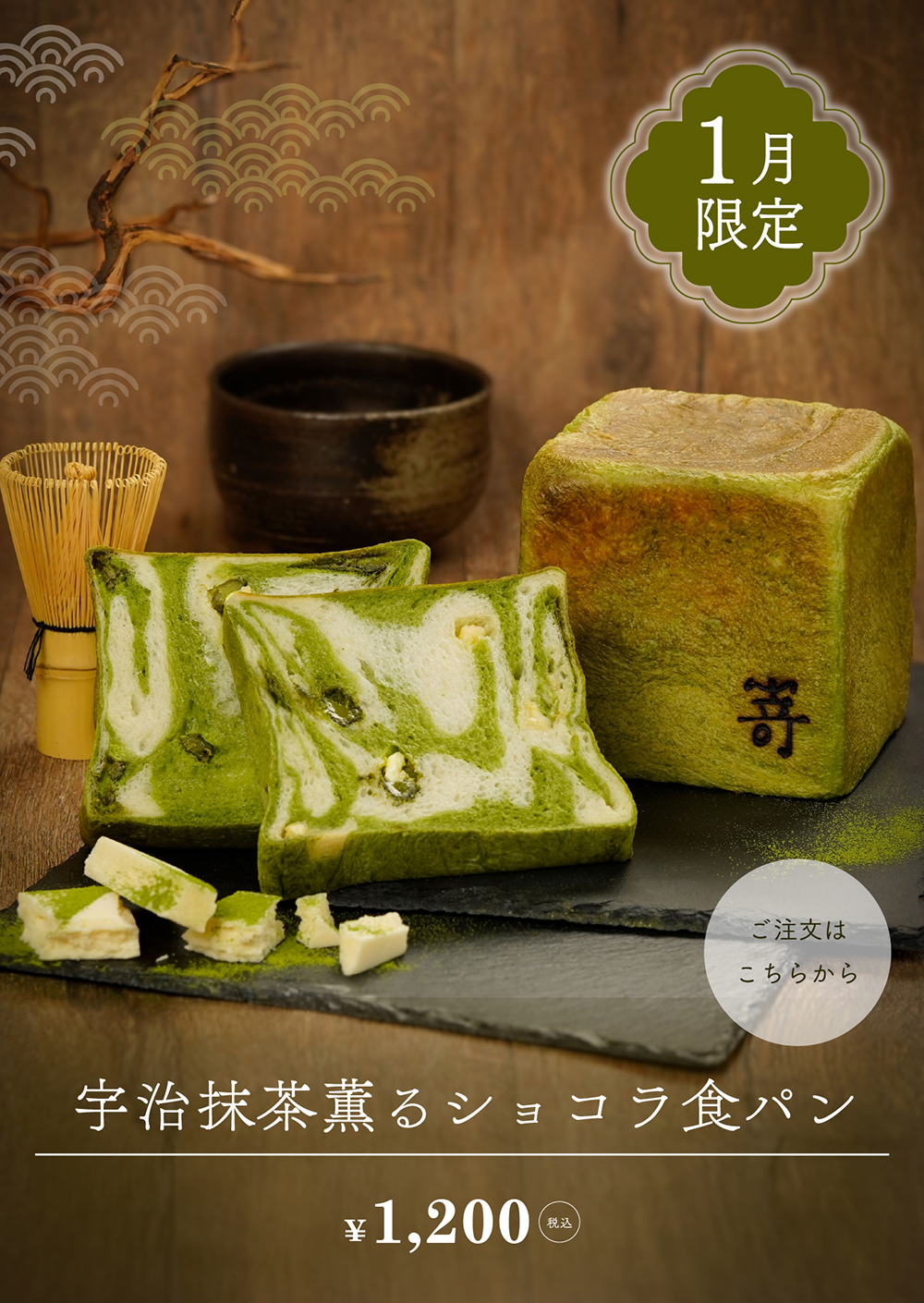 1月9日(金)より、1月限定『宇治抹茶薫るショコラ食パン』が新登場。