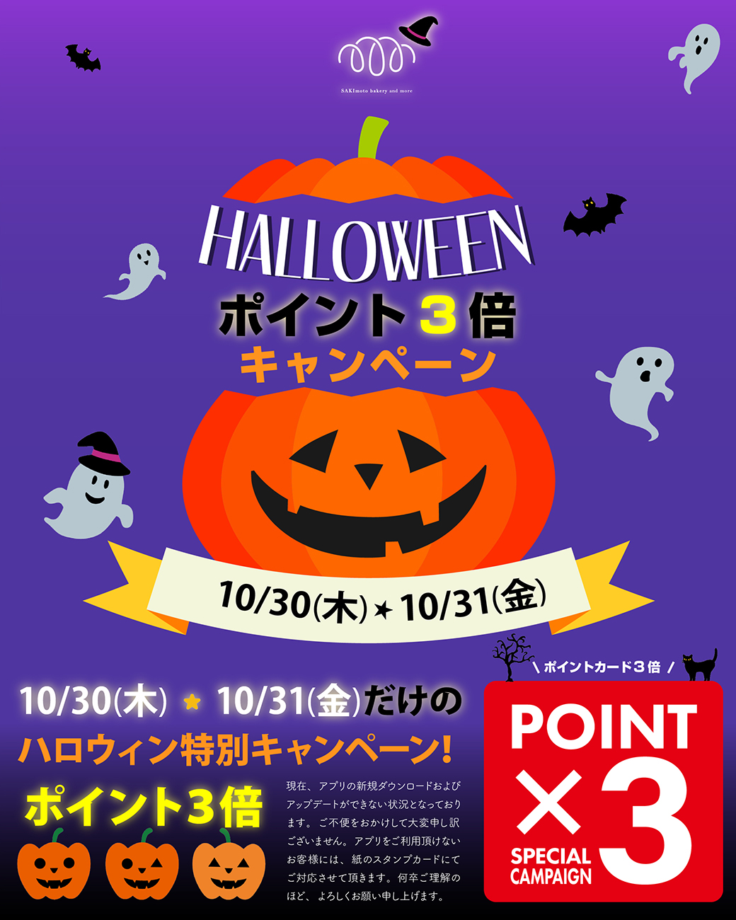 10/30(木)・10/31(金)の2日間限定で、ポイント3倍キャンペーンを実施します!
