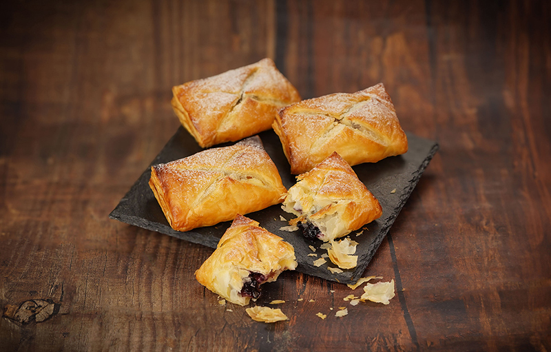 サクサクのパイ生地の中に、チーズケーキ風のクリームと嵜本ベーカリーのブルーベリージャムを包みました。