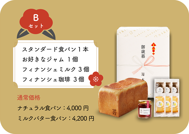 極美“ナチュラル”食パン+ジャム(1個)+フィナンシェミルク・珈琲(各3個)