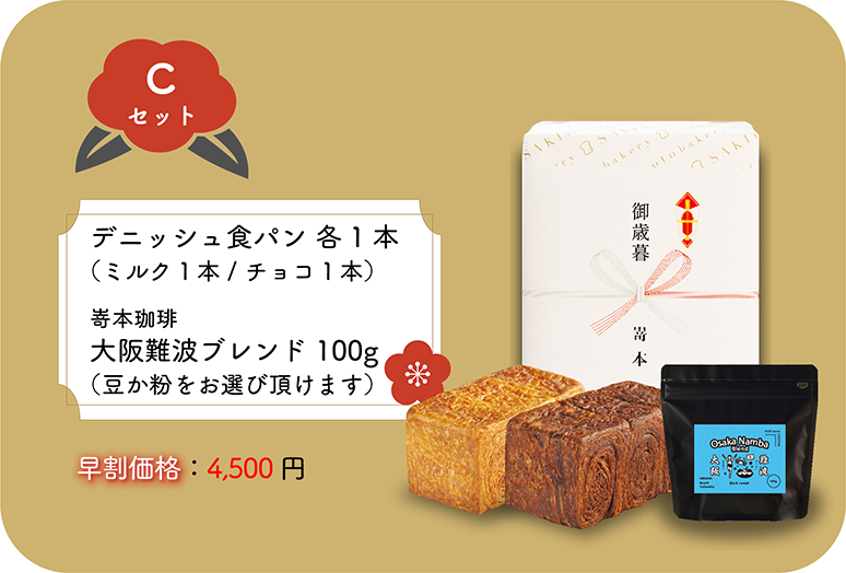 デニッシュ食パンミルク・チョコ(各1本)+嵜本珈琲大阪難波ブレンド(100g)