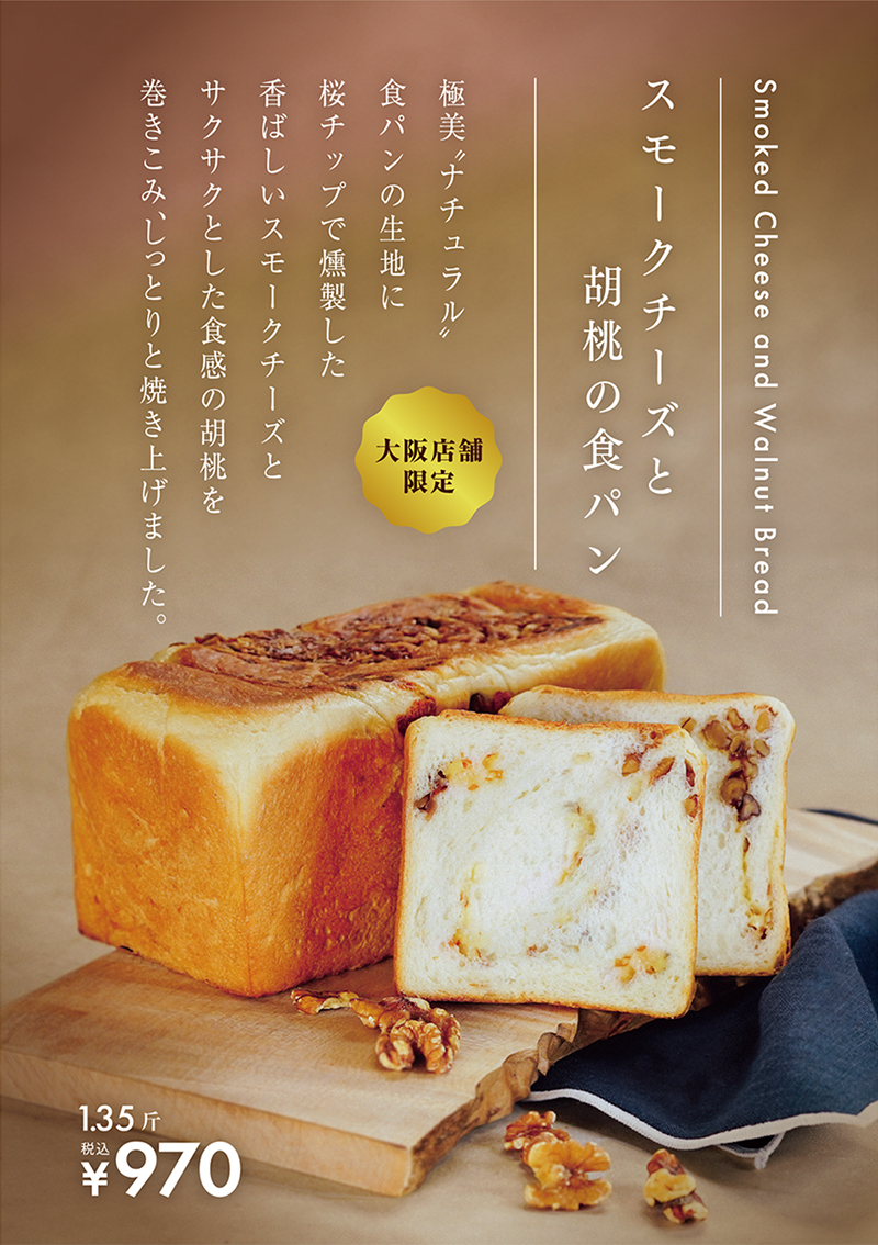 【大阪店舗限定】スモークチーズと胡桃の食パンが新登場。