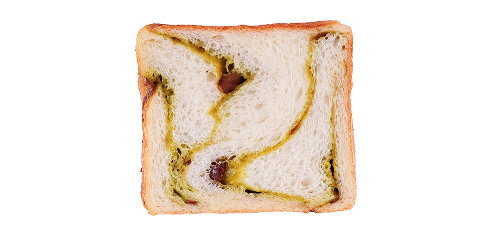 西尾の抹茶を使用した抹茶クリームとあずきをパン生地に混ぜ込み、1.35斤サイズで焼き上げた和スイーツ食パンです。