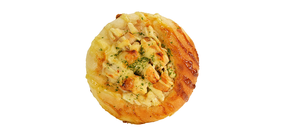 ほどよい辛みと爽やかな香りの柚子胡椒マヨが全体を引き締め、仕上げにのせたチーズが具材の旨みをやさしくまとめます。ふんわりとした生地に、グリルチキンの香ばしさと柚子胡椒の余韻が広がる一枚。